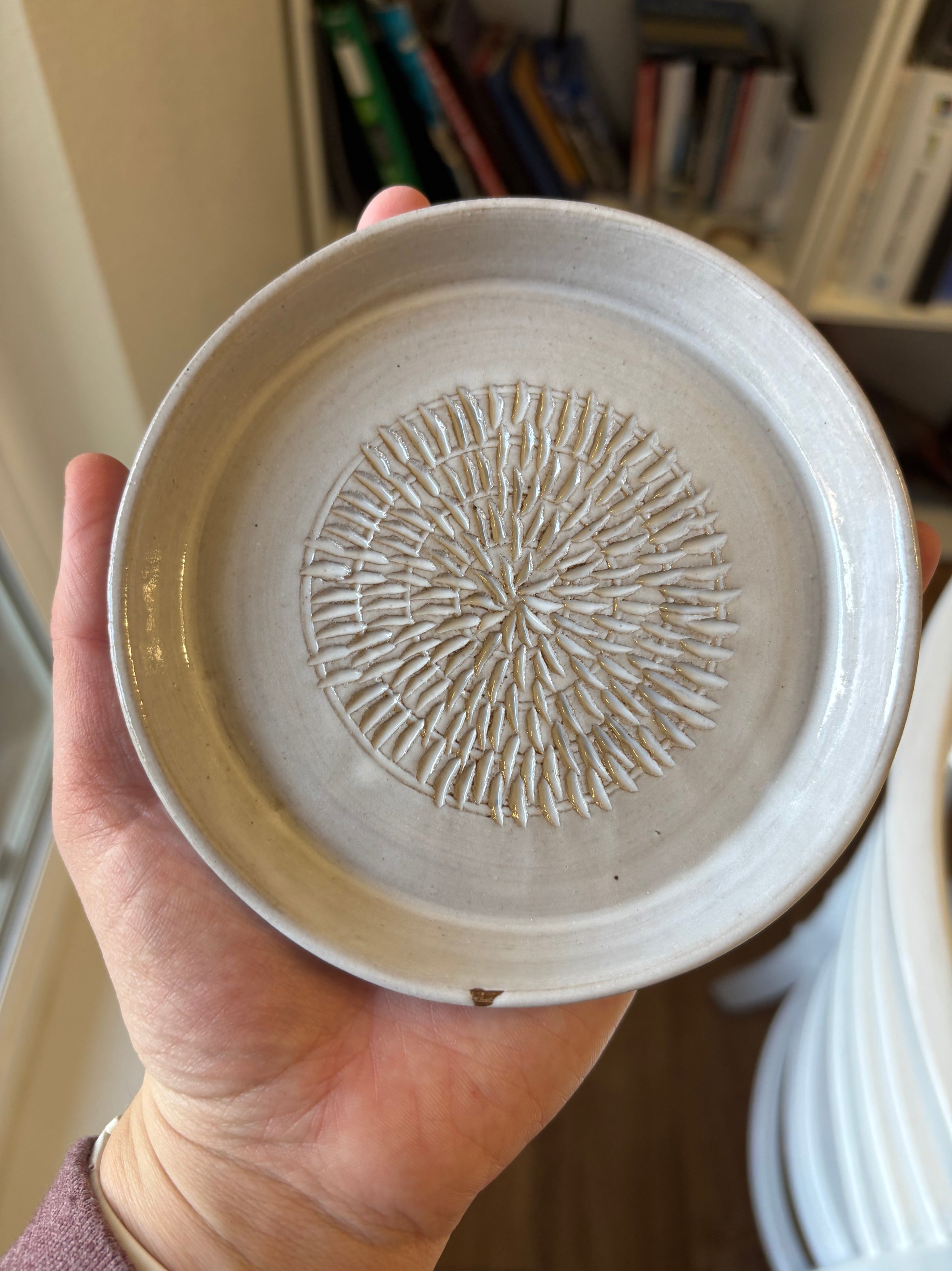 “Chrysanthemum II” White Large Garlic Grate Plate