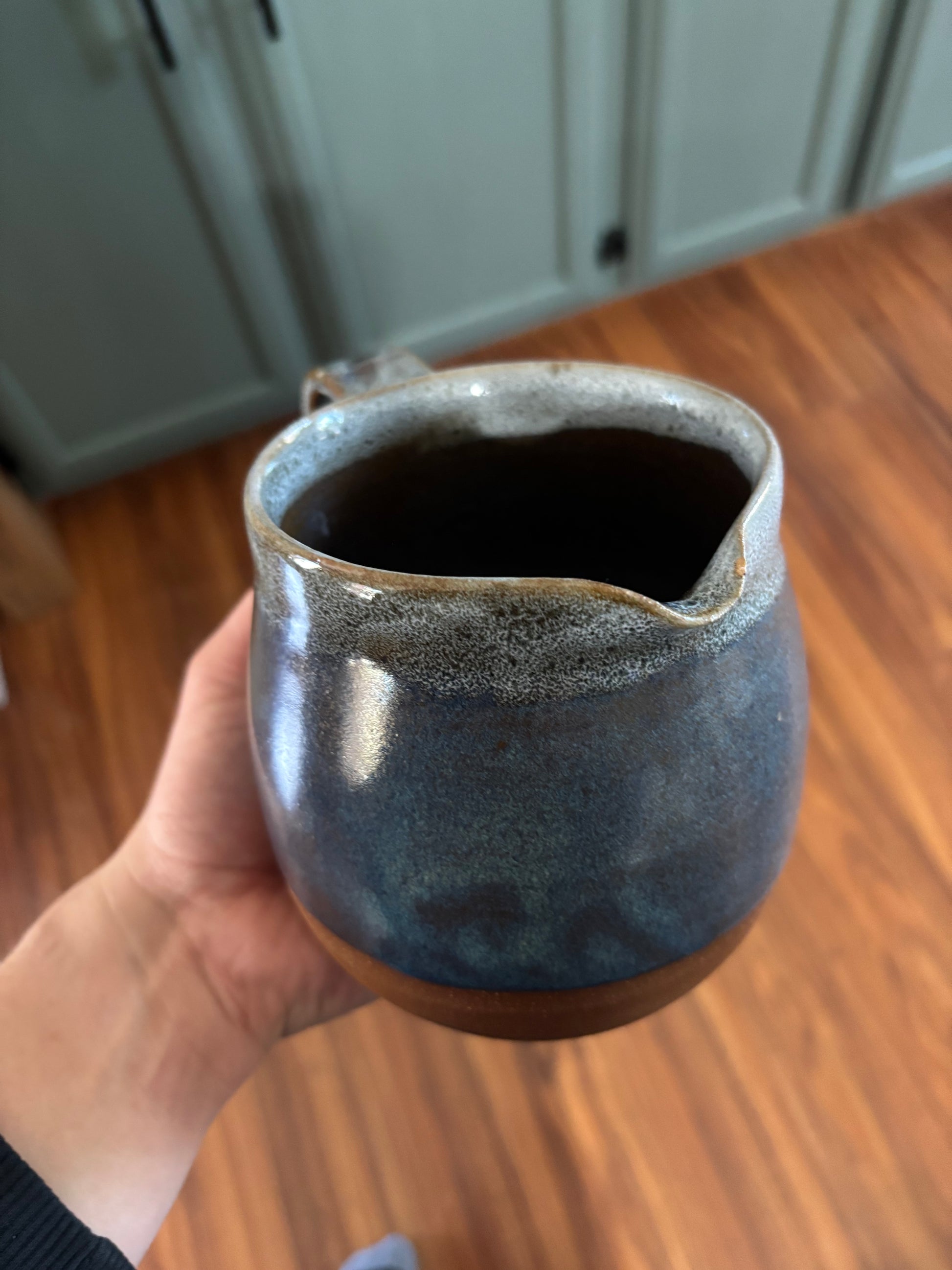 This handmade pitcher is available for adoption and is seeking its forever home. Makes a great addition to your kitchen or home decor, will happily hold any beverages or flower arrangements, adds some joy and loves unconditionally.