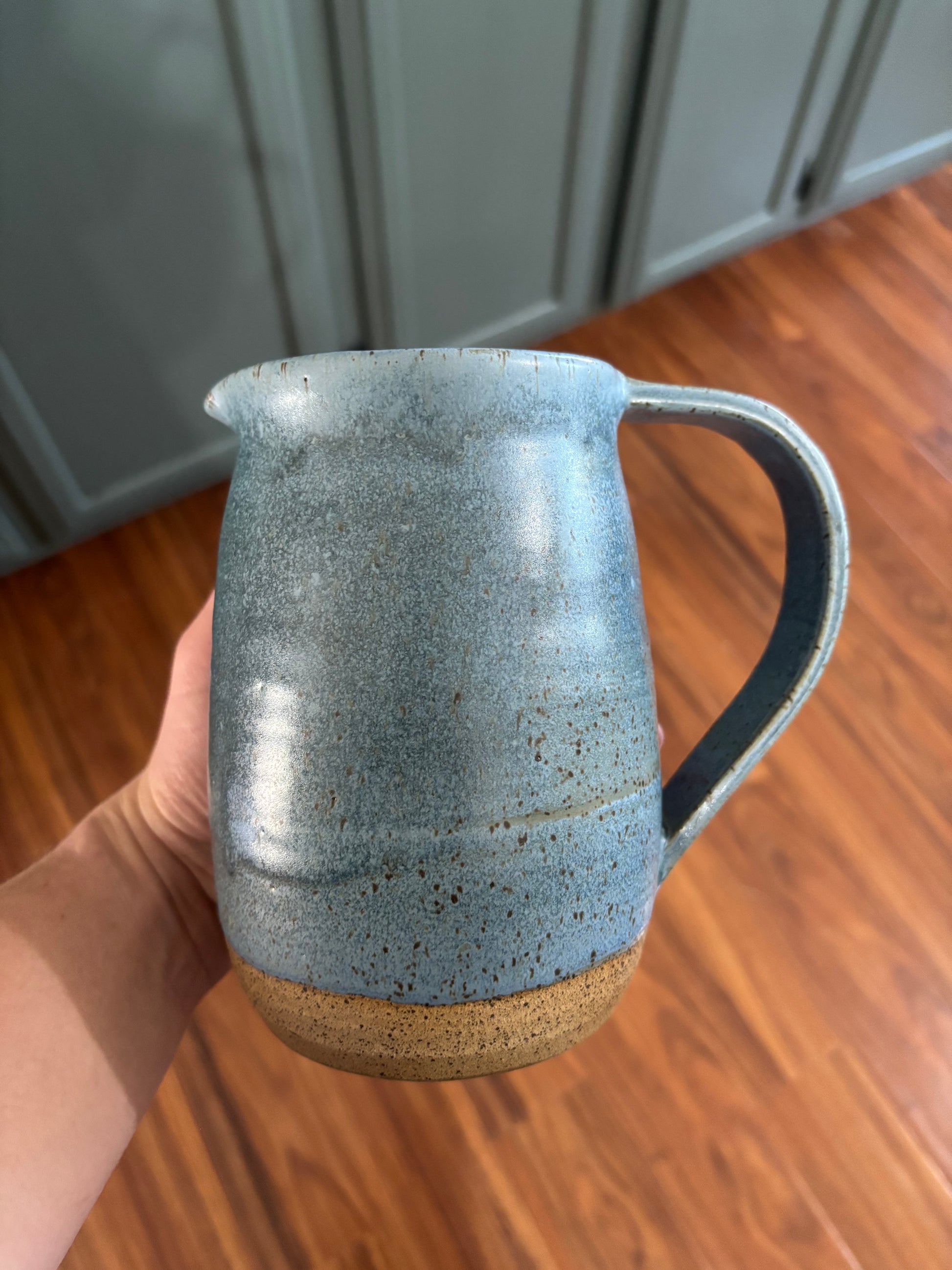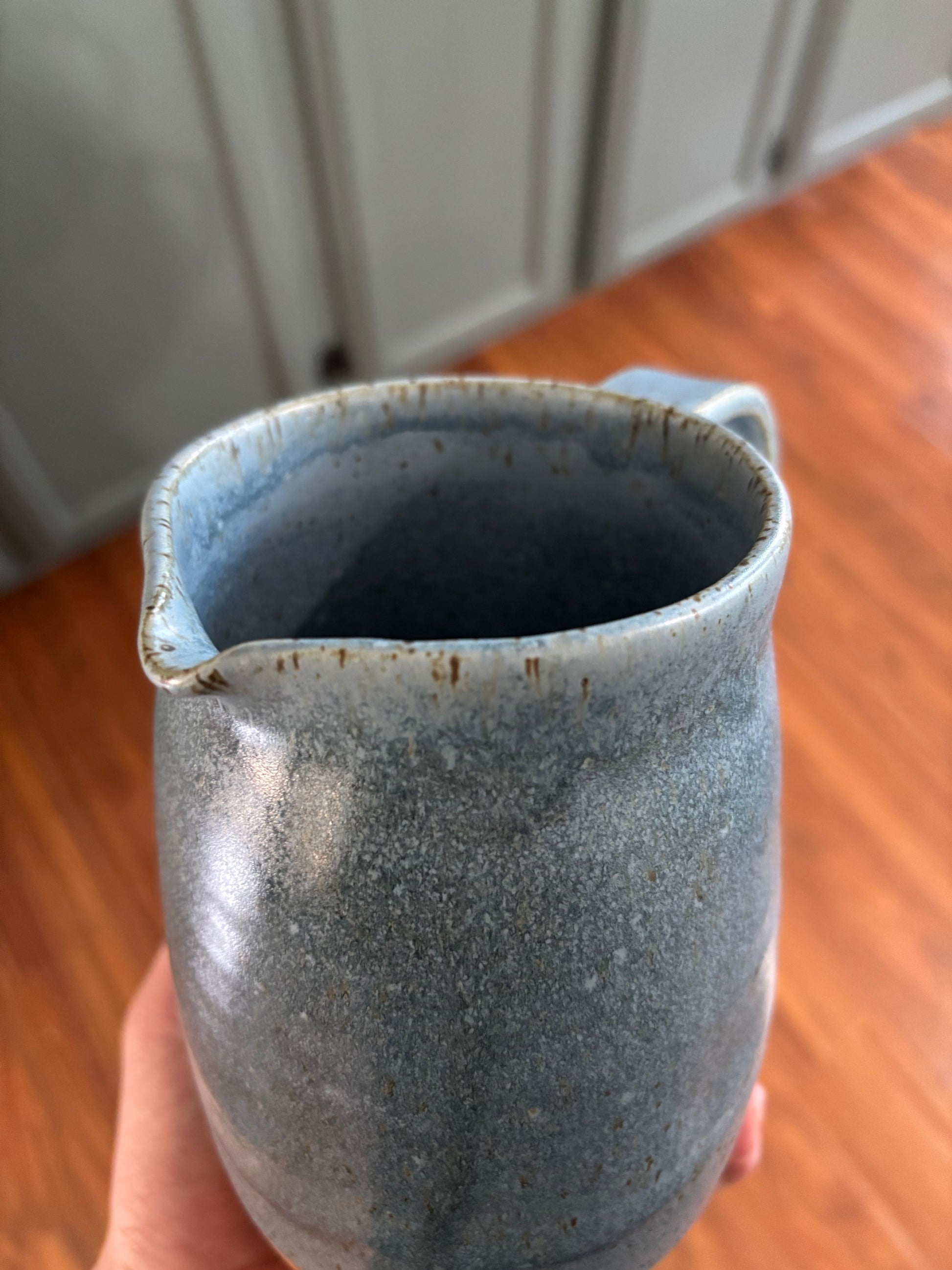 This handmade pitcher is available for adoption and is seeking its forever home. Makes a great addition to your kitchen or home decor, will happily hold any beverages or flower arrangements, adds some joy and loves unconditionally.