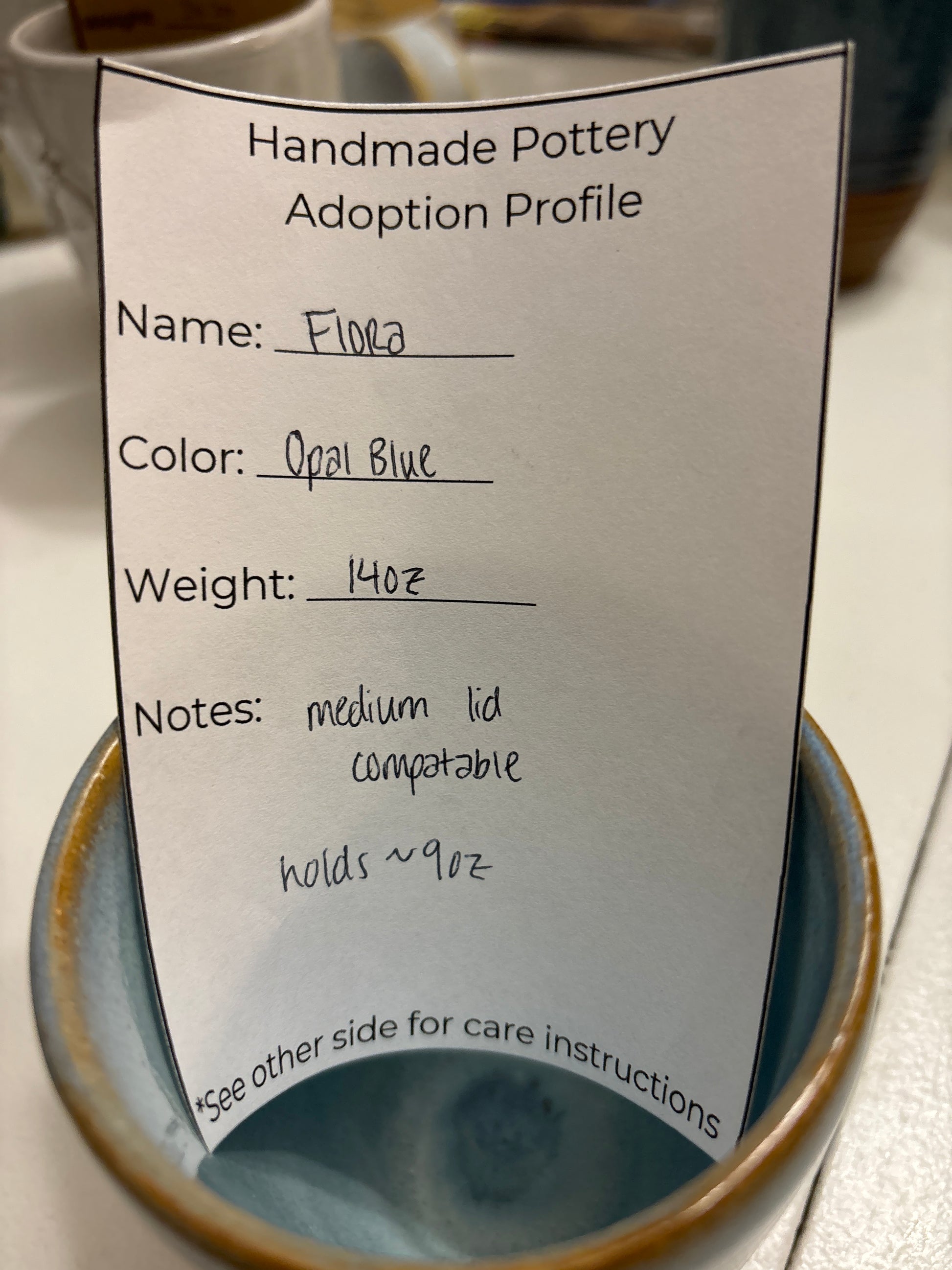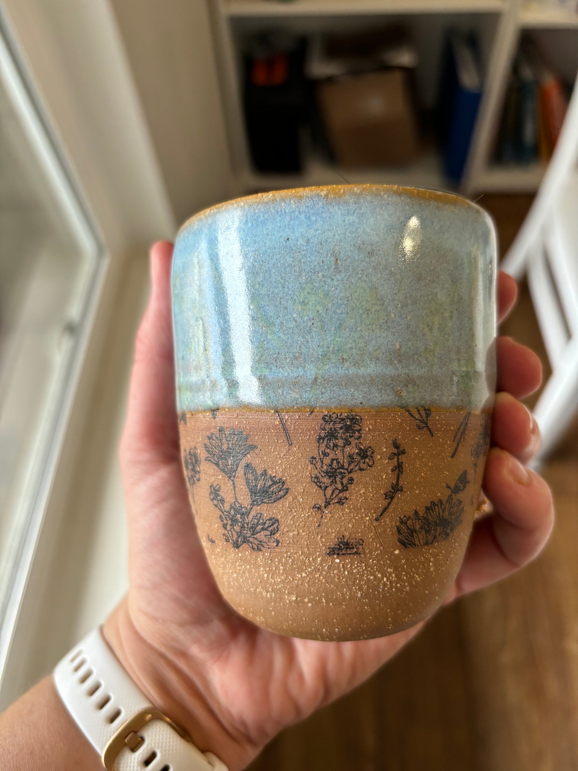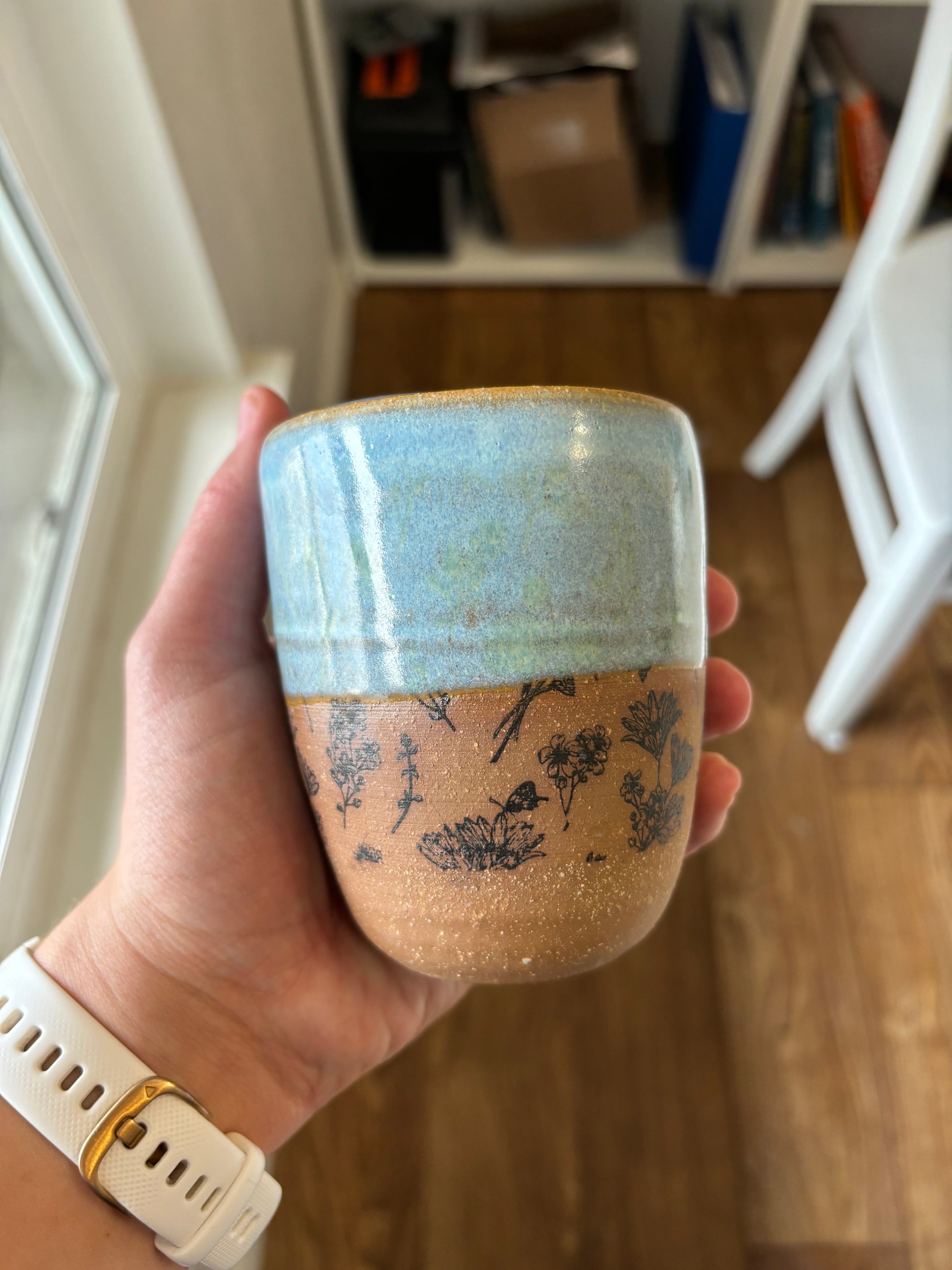 “Flora” Opal Blue Floral Tumbler ~9oz